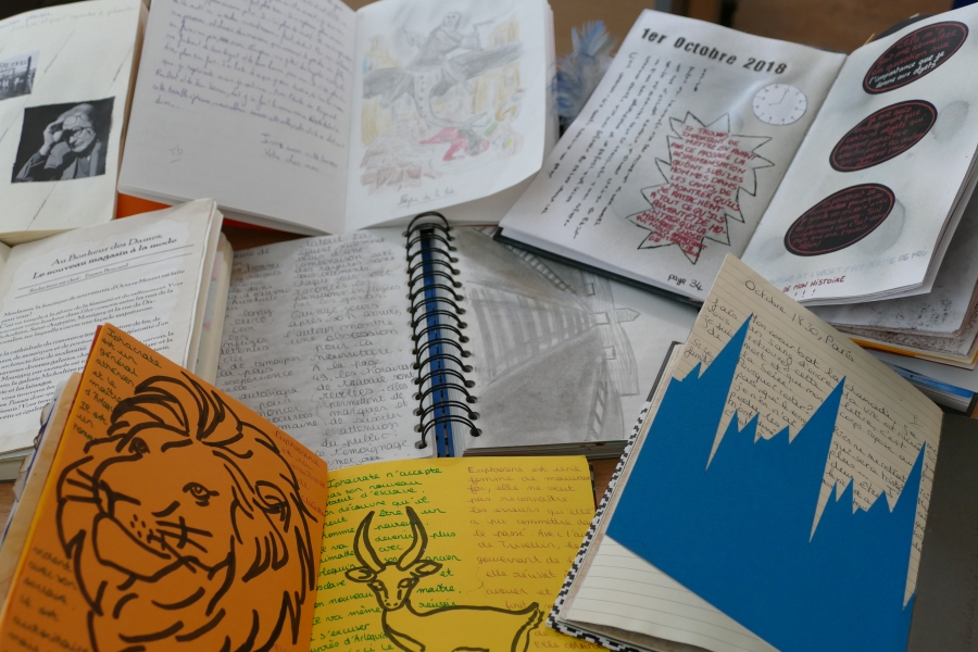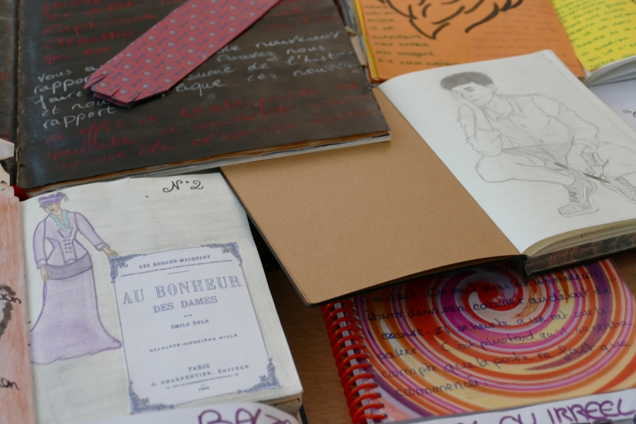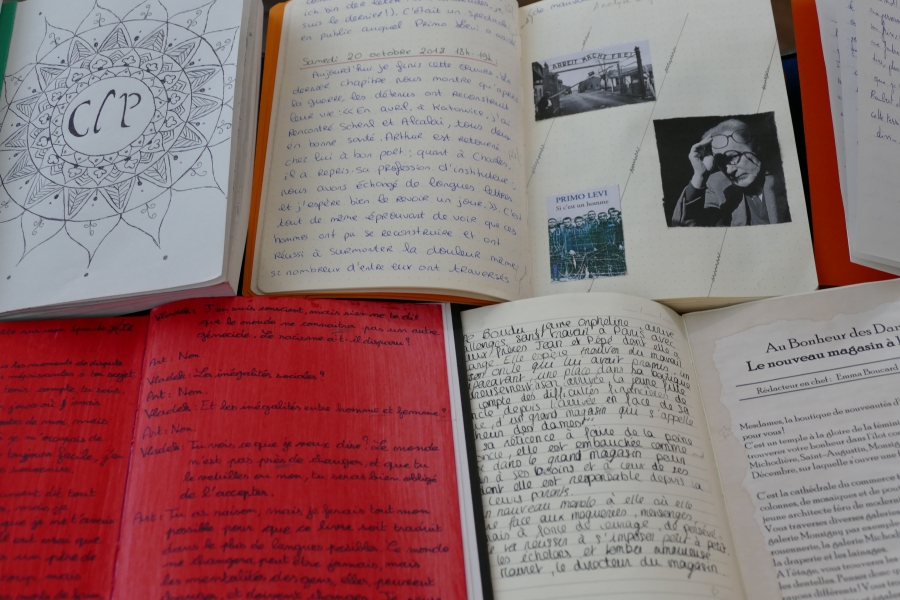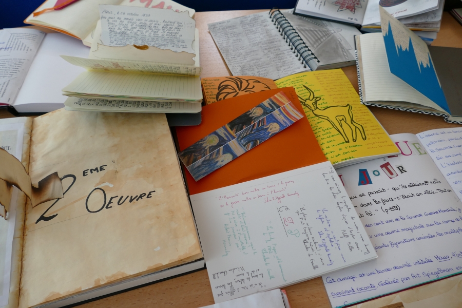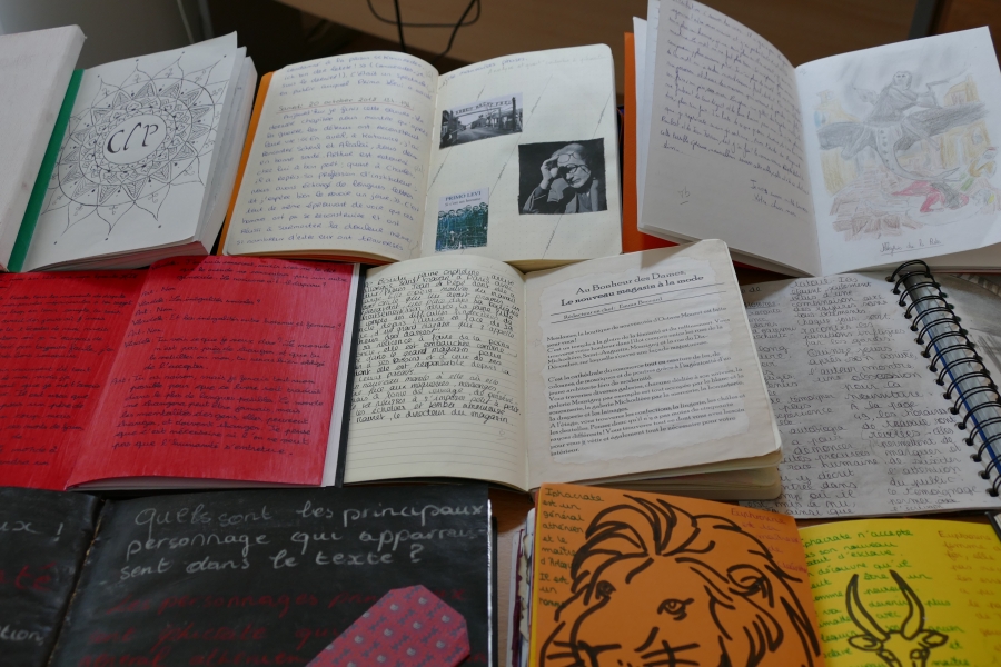 Tout commence par le choix du carnet, premier reflet de la personnalité de l’élève. Seconde étape : la production littéraire. De fait, il s’agit de produire un (des) texte(s) personnel(s) et de formes variées : journal de bord, critique de type journalistique, réécriture d’un passage de l’oeuvre, portrait, bande dessinée, interview… Pour chaque oeuvre il faut une production différente même s’il est possible de mêler les techniques.