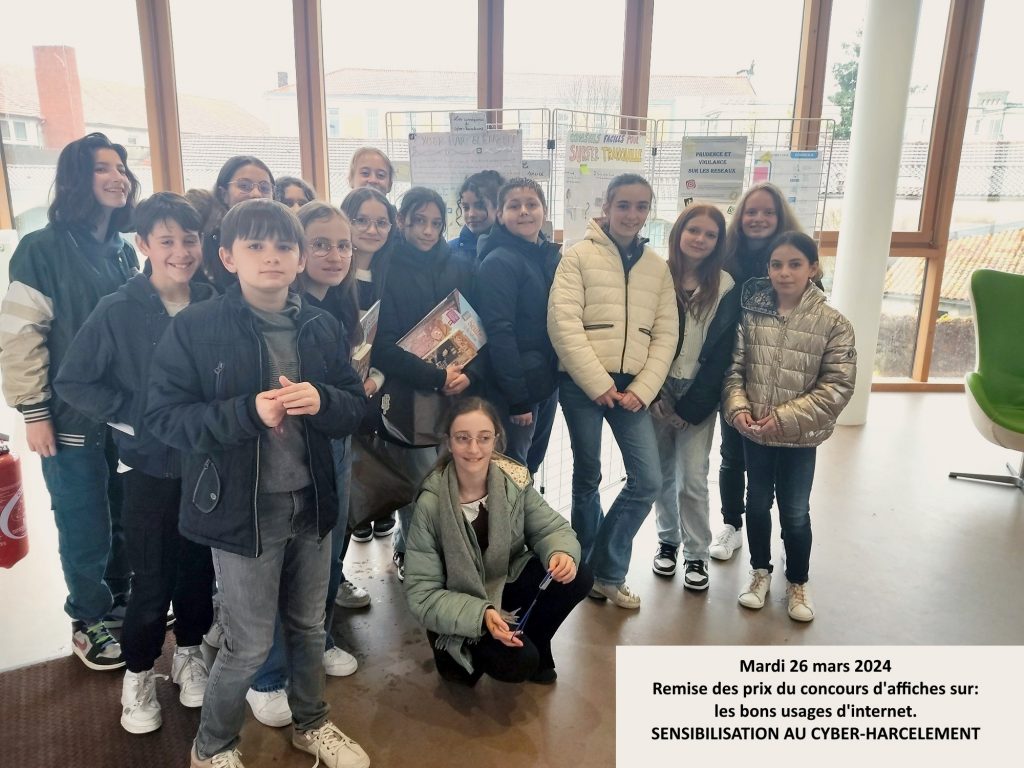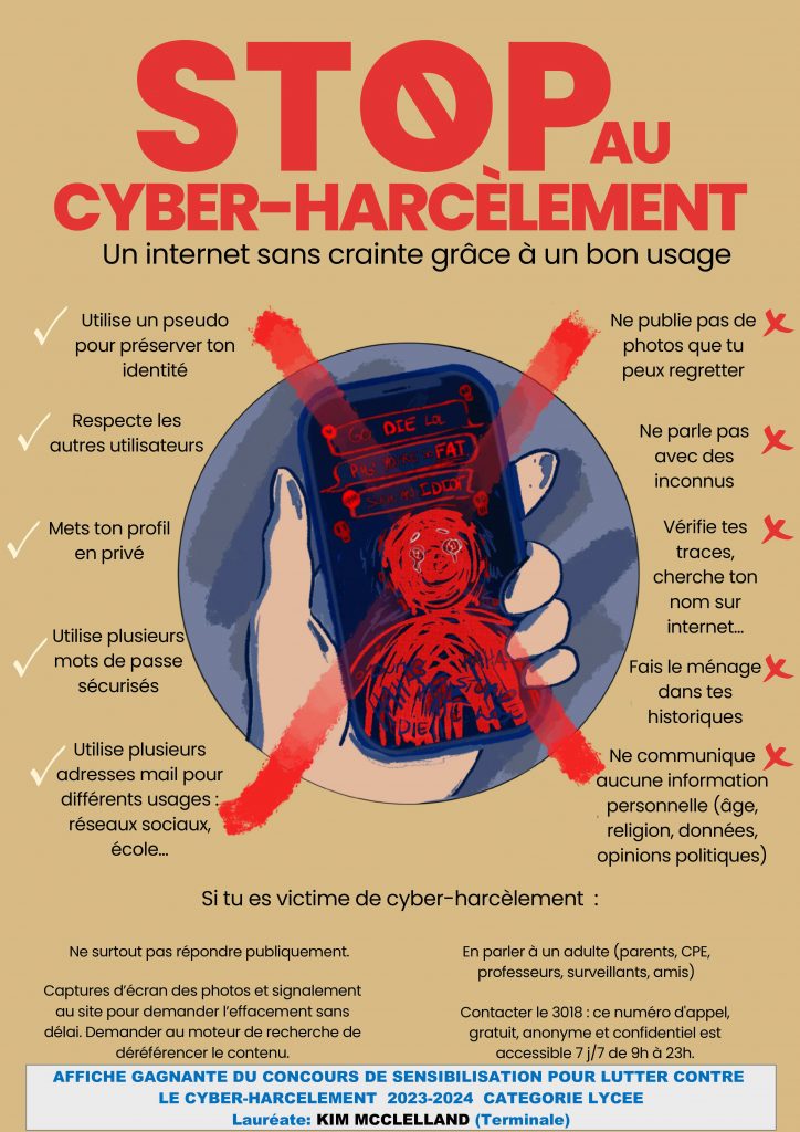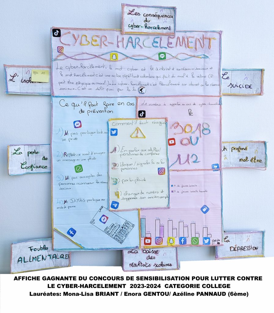 Félicitations à tous ces élèves pour leur participation, leur investissement et pour les belles affiches qu’ils ont réalisées ! Les membres de l’atelier de sensibilisation pour lutter contre le harcèlement scolaire vous remercient pour votre implication