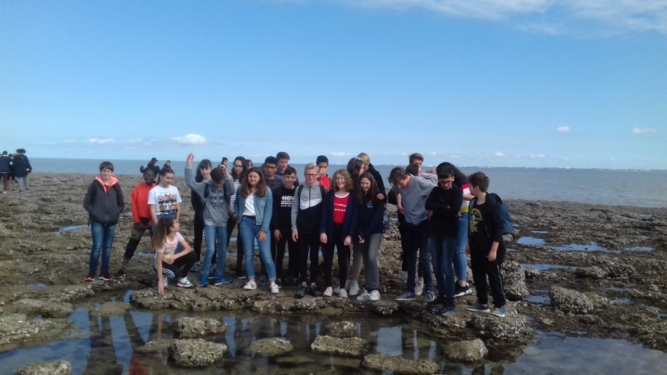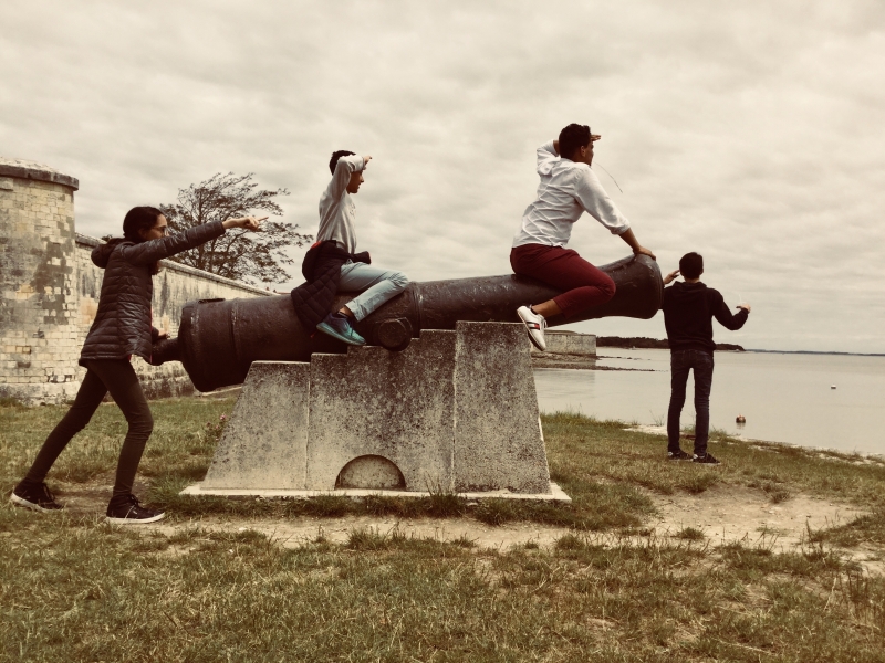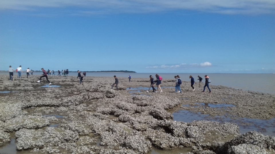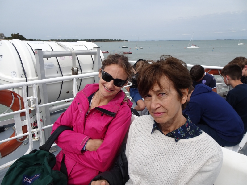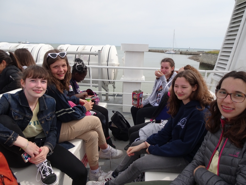 The morning appointment was given at 7:30 a.m. at the cathedral. After a relatively quiet bus ride, we arrived at 10am at the Fouras pier. While waiting for the boat, the students took the opportunity to take the sea air, walk on the shells, tease some crabs or some shrimp.