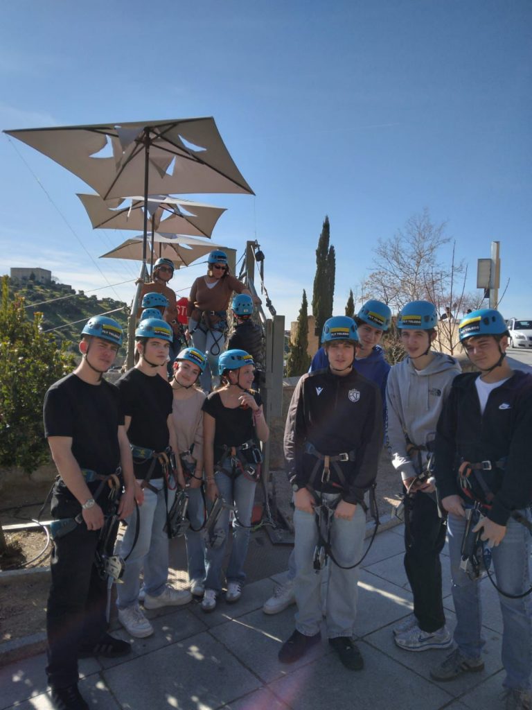 La fin d’après-midi est sportive : vol en tyrolienne. Sur plus de 180 mètres de câble, passant au-dessus du Tage et d’un pont du XIIème siècle, elle est la plus longue tyrolienne urbaine d’Europe. Après cette aventure extraordinaire, nous retournons à Madrid dans nos familles.