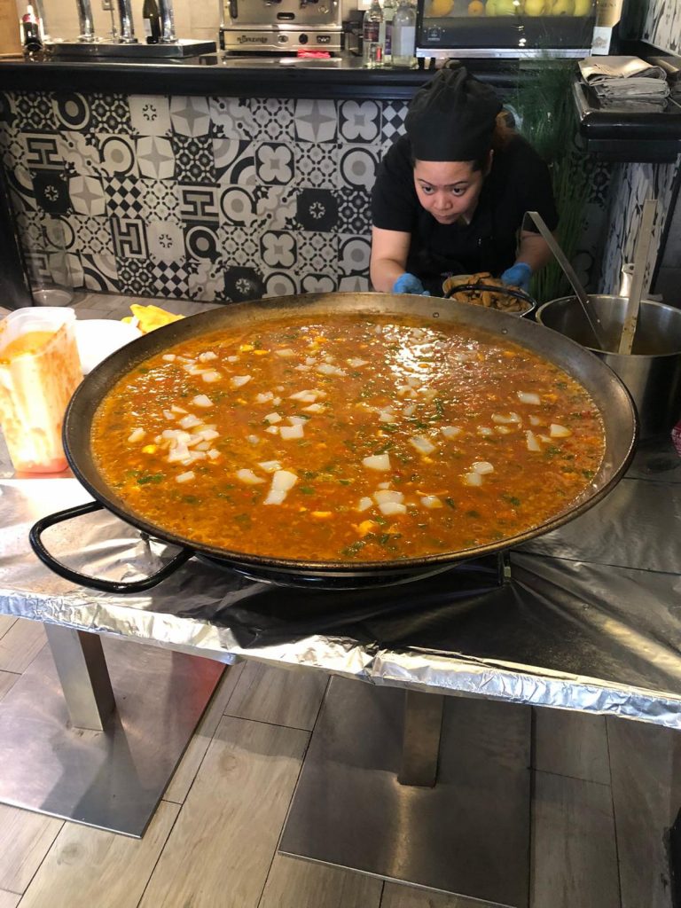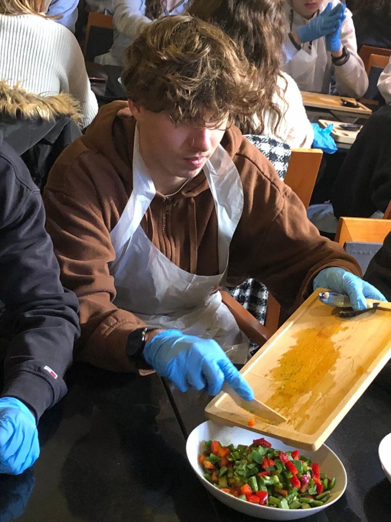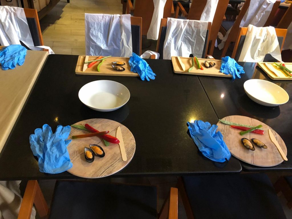 En matinée, nous participons avec beaucoup d’application à la préparation de la paëlla du déjeuner. Tout est prêt pour nous accueillir.