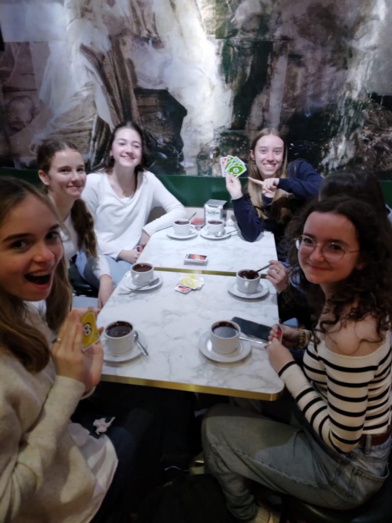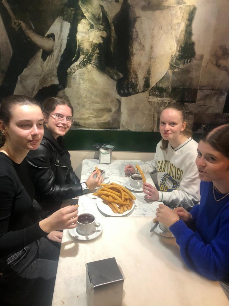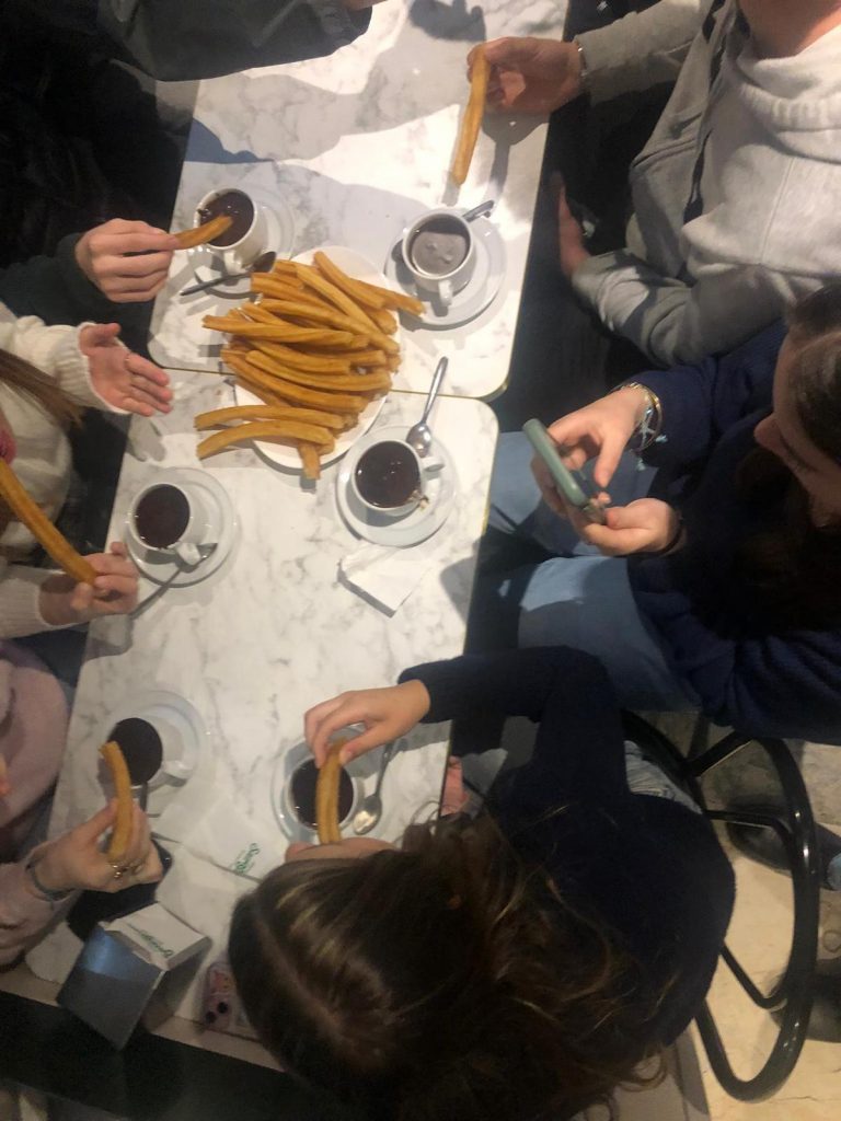 Après le pique-nique fourni par nos familles nous visitons le musée de la Reina Sofia qui abrite le célèbre tableau “Guernica” de Pablo Picasso. Ensuite, il est l’heure du goûter. L’occasion rêvée de déguster le célèbre “Chocolate con Churros” : un délice ! En soirée, nous dînons en famille.