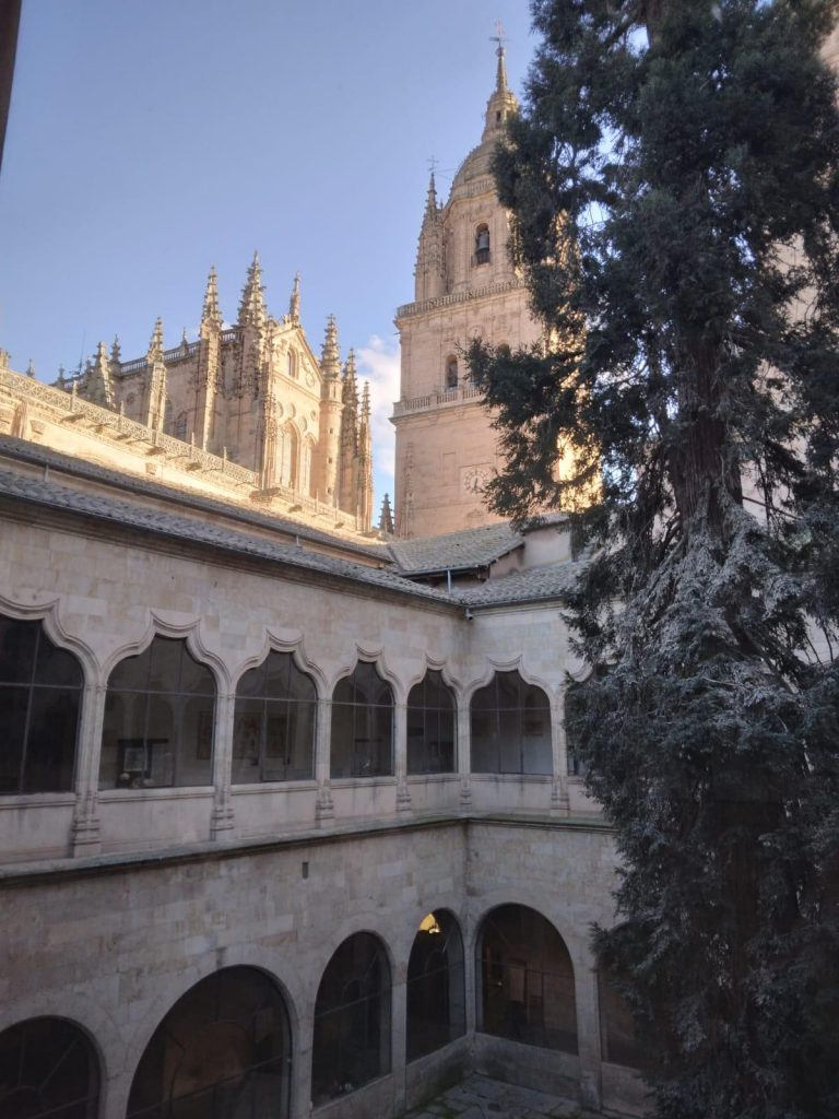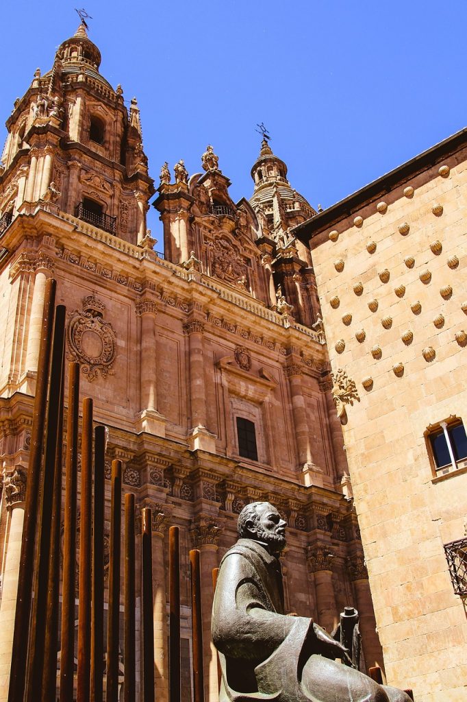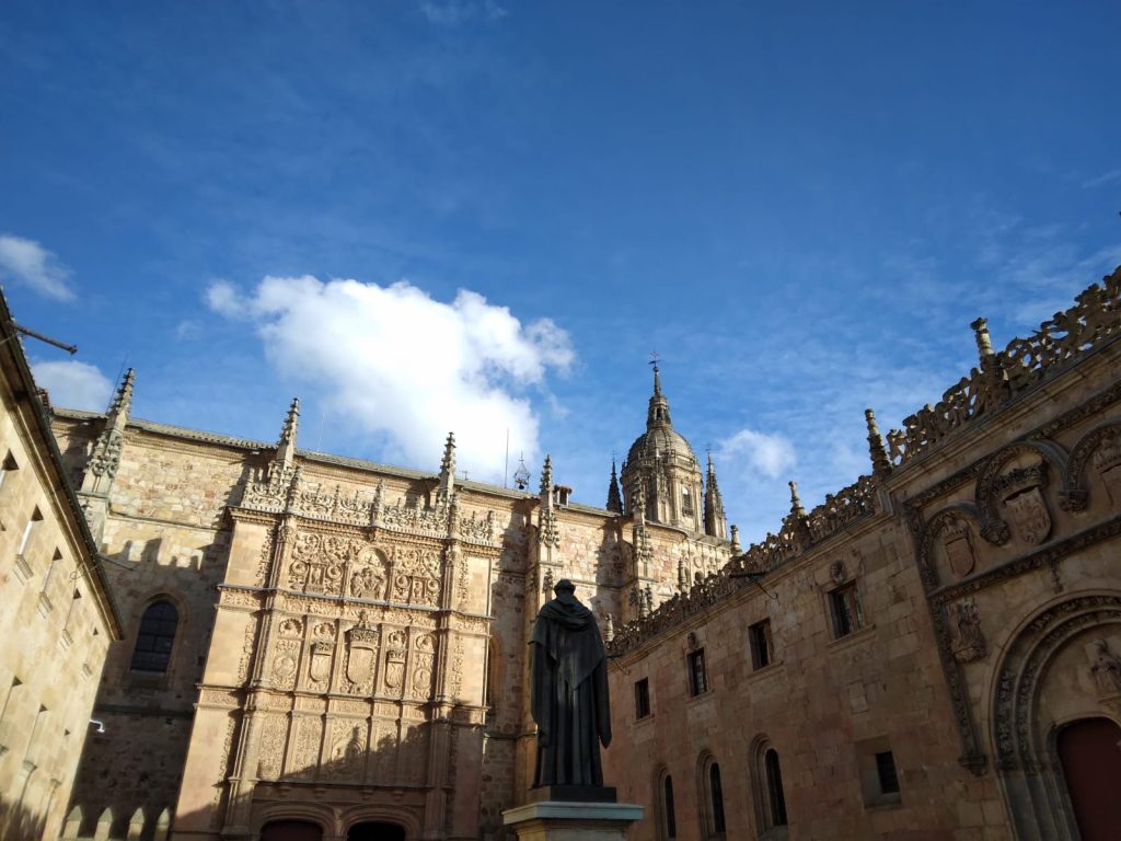 Ensuite, nous nous dirigeons vers l’Université historique de Salamanque fondée au début du XIIIème siècle. Avec plus de 30 000 étudiants et 2 500 enseignants, elle rend la ville très fière. Christophe Colomb, Hernan Cortes ou encore Cervantes ont poussé ses portes. Une grenouille se cache parmi les sculptures de la façade, la tradition dit que l’étudiant qui la trouve est sûr d’obtenir son examen.