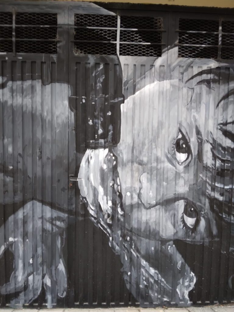 Nous commençons par une visite guidée “del barrio oeste” qui est LE quartier du “Street Art”. Tous les ans, de jeunes artistes entre 18 et 30 ans sont sélectionnés pour peindre des portes de garage. C’est grâce à l’association ZOES (Zona Oeste) que ce quartier a pu être redynamisé.