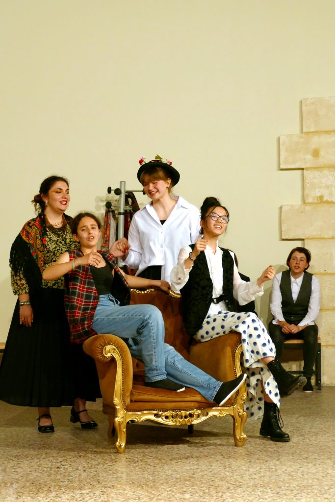 Côté Lycée, cela fait déjà de nombreuses années que l’atelier théâtre existe. Plusieurs générations de lycéens sont déjà montées sur les planches. Chaque année il faut se renouveler donc, après “Songe d’une nuit d’été” l’an dernier, 2023 fait la part belle au théâtre de Boulevard. En effet, la troupe joue Feydeau, librement adapté par Mme Véronique GABRIEL et M. David POUGNAUD, acteur professionnel et metteur en scène. “Un fil à la patte” est devenu “Le fifil à la papatte”. La pièce est une réussite et les éclats de rire vont bon train. Les applaudissements fournis en disent long sur la satisfaction du public chaque soir. Chacun(e) rentre à la maison satisfait de ce moment de détente.