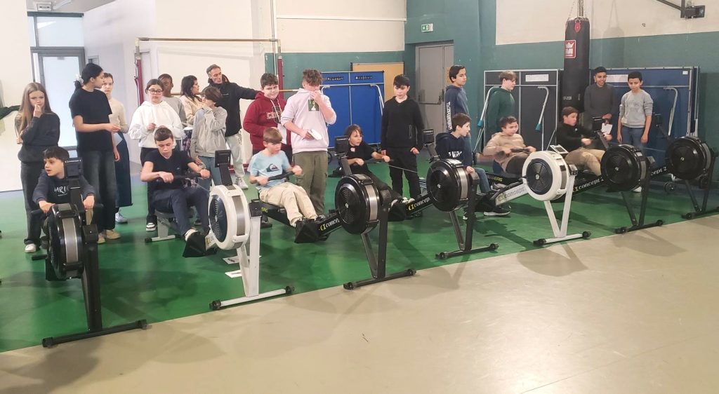 Ils bénéficient ainsi d’une séance de “Rameur” (aviron indoor) à travers un relais qui comptera dans un classement national.