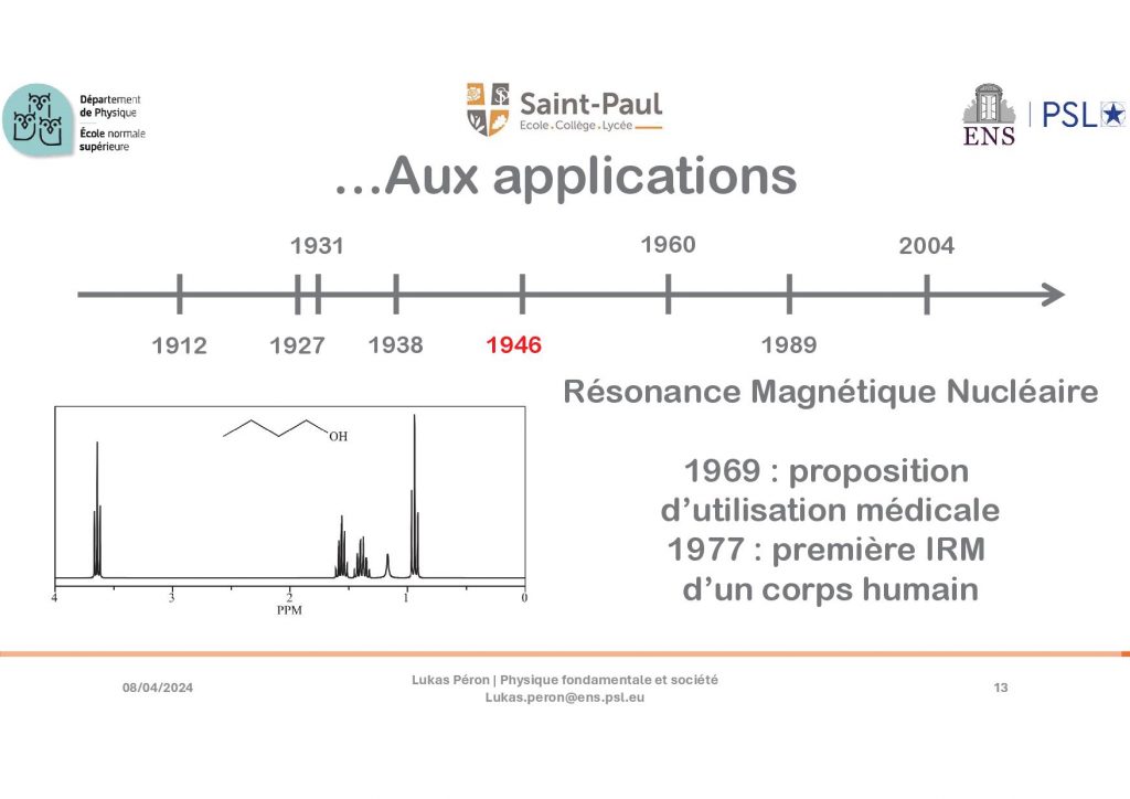 “À l’orée du 20ème siècle apparaît un nouveau cadre conceptuel et formel en physique : la mécanique quantique. Développée par un ensemble de jeunes prodiges pour répondre à des problèmes fondamentaux sur notre compréhension du monde, son histoire ne manquera pas de bouleverser le quotidien de tous. De l’invention du laser à celle d’internet, il lui aura fallu moins d’un siècle pour radicalement transformer notre société. Ensemble, au cours d’un passage en revue chronologique, nous verrons comment nous sommes passé d’un questionnement fondamental sans applications à l’omniprésence de la mécanique quantique dans nos vies.”