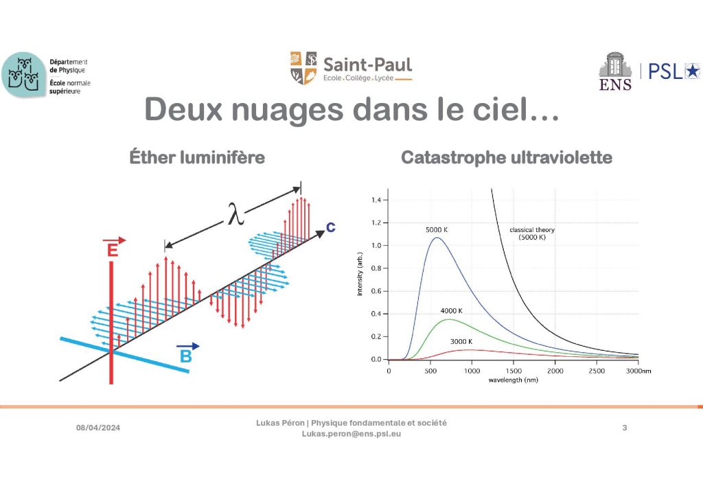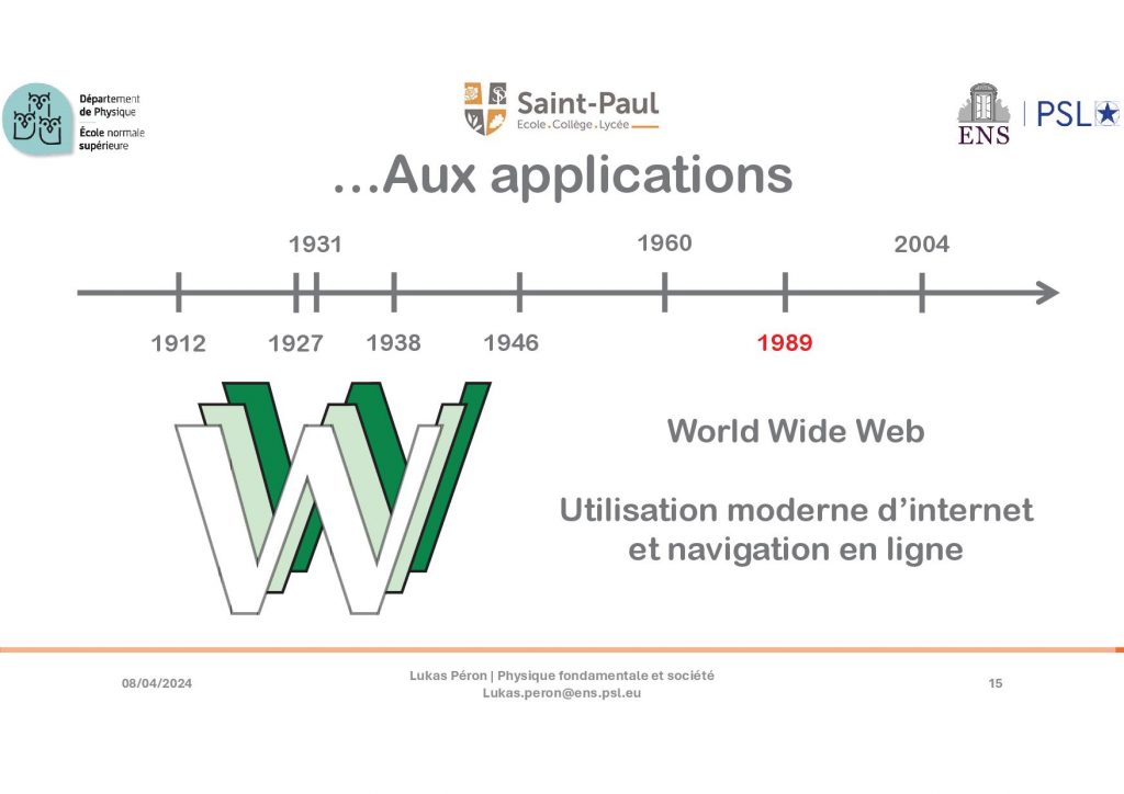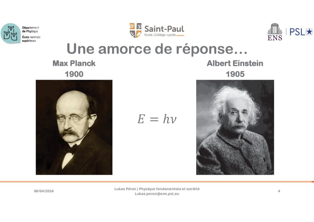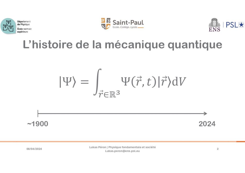 “Quand la physique fondamentale révolutionne la société : l’histoire de la mécanique quantique” tel est le sujet que Lukas PERON, ancien élève de Saint-Paul, est venu exposer à nos élèves de “Sciences et Technologies de Laboratoire” (STL). Une conférence d’une heure en partenariat avec notre professeure documentaliste du CDR Lycée.