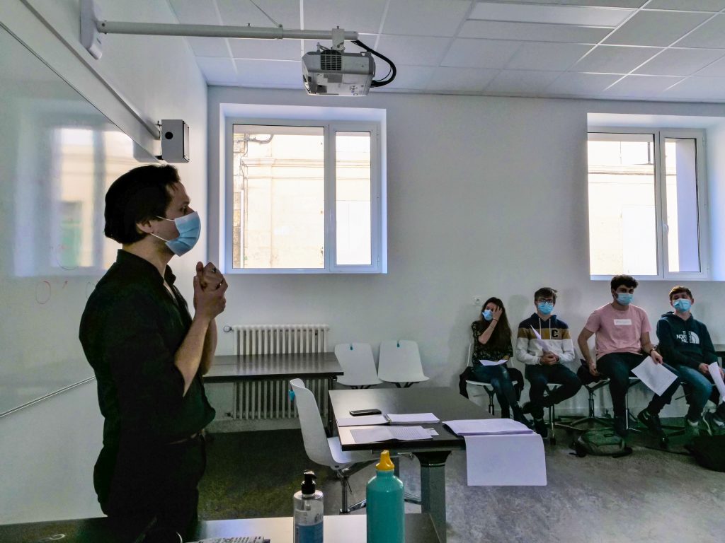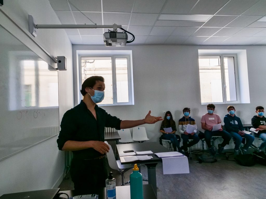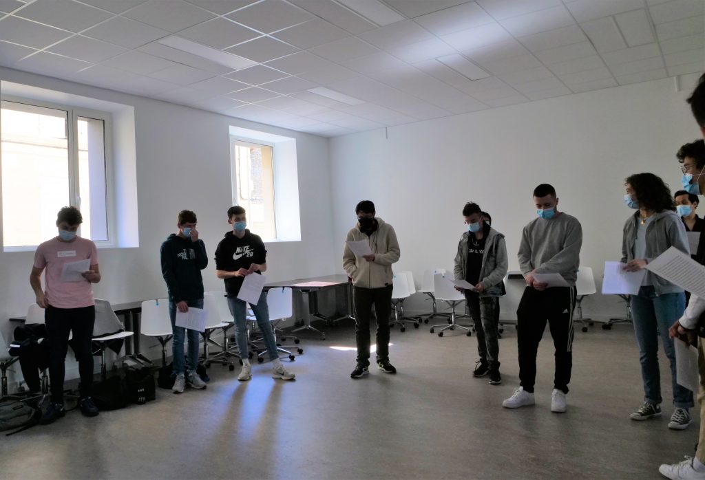 A la fin du mois de mai 2021, le comédien Charles DI MEGLIO de la Compagnie OGHMA rencontre nos élèves de Terminale. Objectif : leur donner des outils pour le “Grand Oral”. Venue à la rencontre de nos élèves de sixième quelques temps auparavant, la troupe avait connu un grand succès.