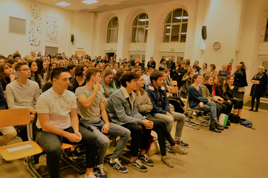 M.CONSTANTIN, notre Chef d’Etablissement, ouvre la soirée par un discours d’accueil devant une assemblée très attentive. Vient alors l’appel des candidats accompagné de la remise du célèbre chapeau “mortarboard” et du diplôme tant convoité. Après émargement c’est aussi la remise du livret scolaire. Il s’agit alors d’immortaliser l’instant : photo individuelle puis photo de groupe dont une avec le fameux lancé de chapeau.
