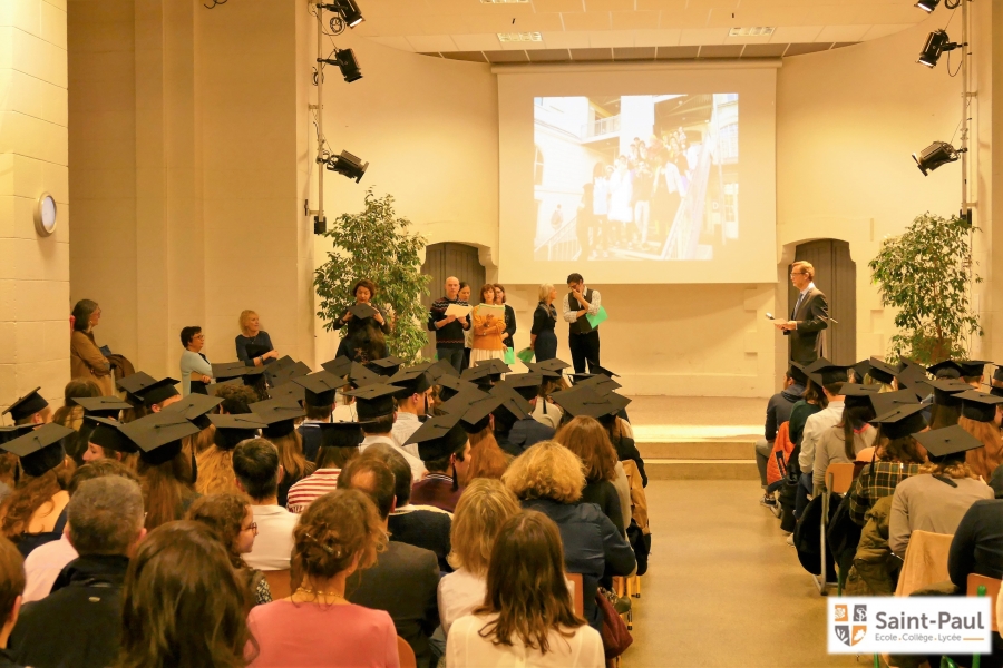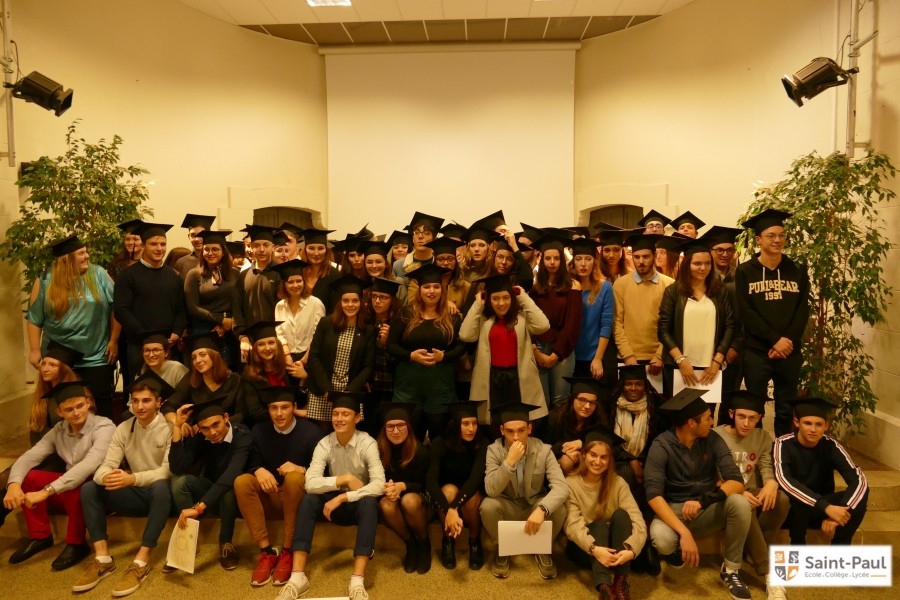 Vendredi 21 décembre 2018 : deuxième édition de la célébration de remise des diplômes du baccalauréat. La salle St Paul se rempli des lauréats venus plus nombreux que l’an dernier, accompagnés de leurs familles. Chacun est heureux de revenir à Saint-Paul et de revoir ses “anciens” professeurs.