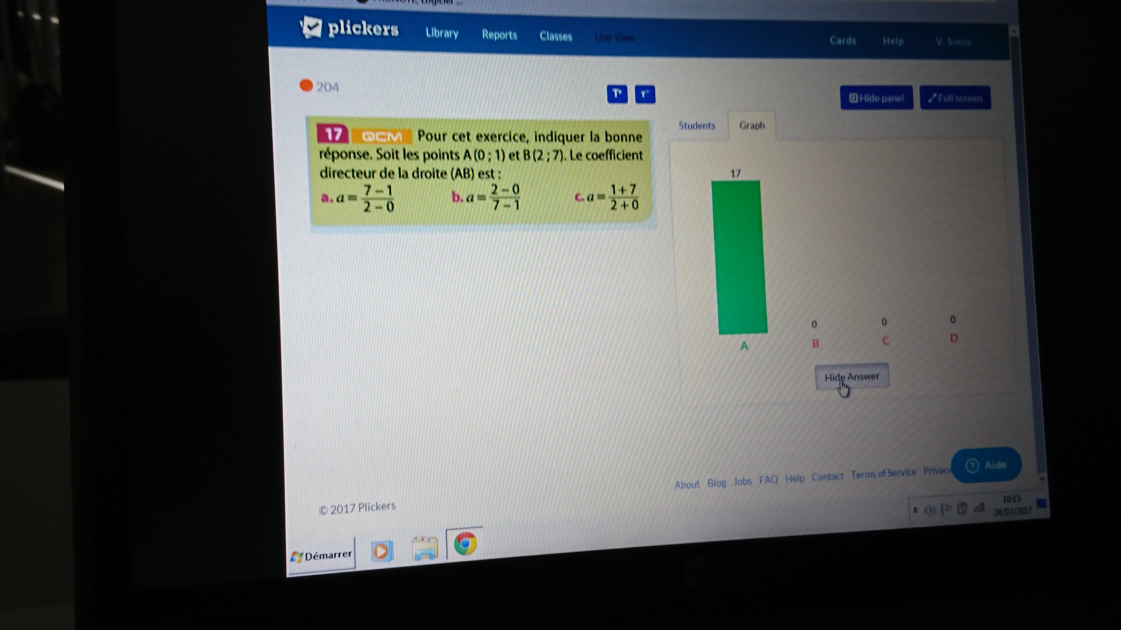 Chaque enseignant place ses ressources sur son « Padlet » : cours, images, sons, vidéos, liens divers… Il s’agit en fait d’un « mur collaboratif » sur lequel les élèves peuvent aussi publier leur travail. A l’issue de la séquence vient le temps de la validation des acquis. A la reprise des QCM relayés par des outils d’évaluation tels que « Plickers » permettent de cibler les points à retravailler dans la classe en fonction des réponses des élèves.