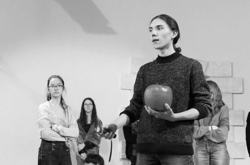 L’Atelier Lycée, composé d’une trentaine d’élèves, propose cette année une succession de sketchs. Sous l’intitulé “Pomme de reinette et pomme d’avis”, l’idée est de mélanger plusieurs textes autour de la dispute. La mise en scène est de Aurélia BALITRAN.