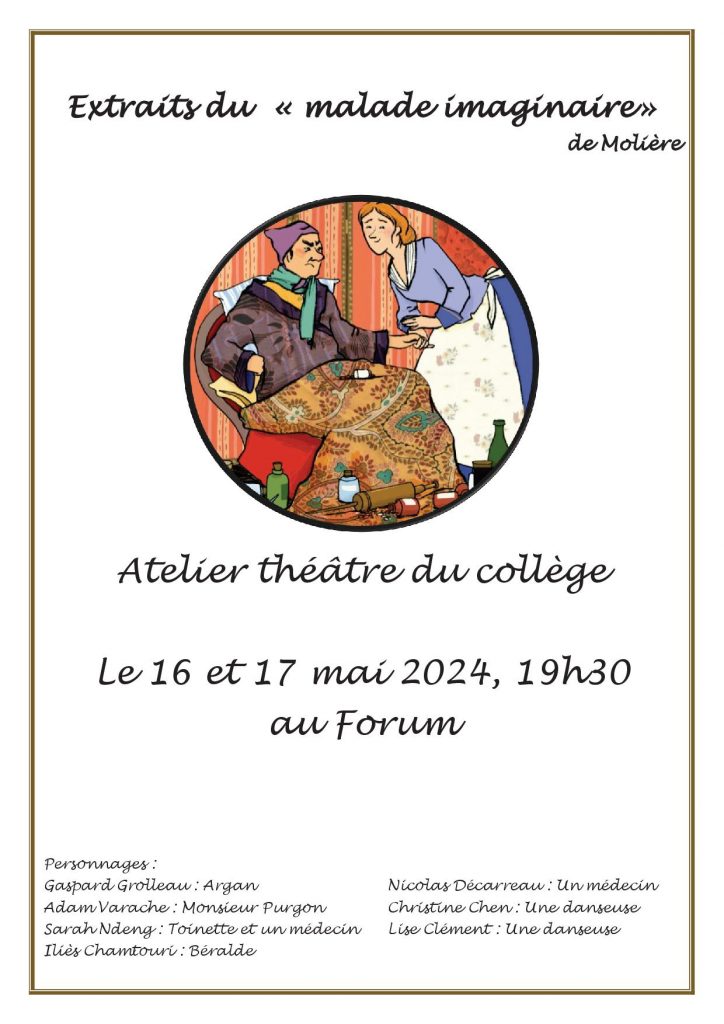 Les 16 et 17 mai 2024 deux représentations ont donc eu lieu le même soir, en deux endroits distincts (Cf. les affiches ci-dessus). Le public, venu nombreux, a apprécié le travail et le talent de nos comédiens en herbe.