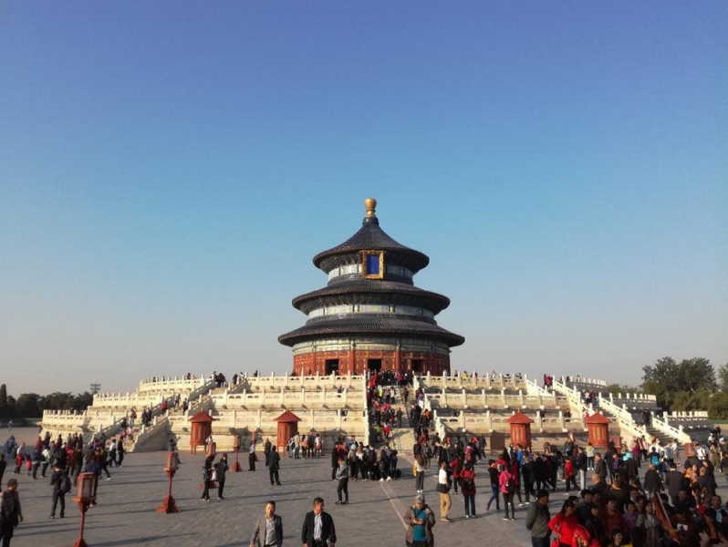 La visite du Temple du Ciel se fait sous un splendide ciel bleu puis direction le parc Olympique et visite du « Nid » (stade construit pour les JO de 2008). Enfin, une séance shopping suit qui permet à nos élèves de marchander avec succès afin de rapporter quelques souvenirs.