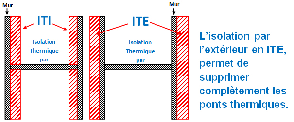 L’isolation par l’extérieure en ITE, permet de supprimer complètement les ponts thermiques.